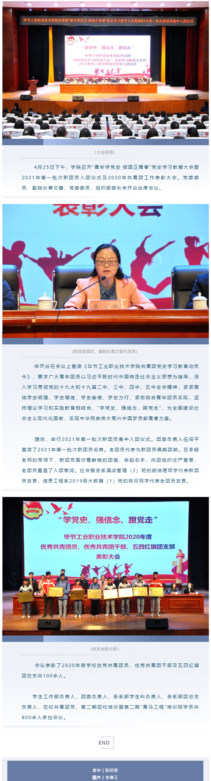 學(xué)黨史、強(qiáng)信念、跟黨走——學(xué)院召開共青團(tuán)黨史學(xué)習(xí)教育大會(huì)暨2021年第一批次新團(tuán)員入團(tuán)儀式及2020年共青團(tuán)工作表彰大會(huì)