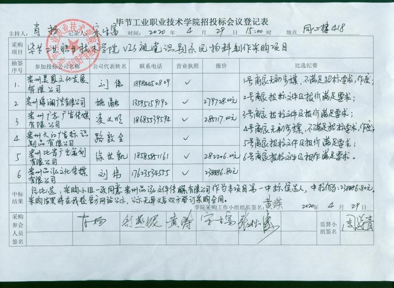 畢節(jié)工業(yè)職業(yè)技術(shù)學(xué)院 VIS視覺識(shí)別系統(tǒng)物料制作采購中標(biāo)公告