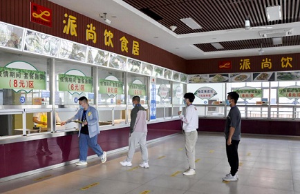 在班上,班主任每日登記到班人數(shù),執(zhí)行晨午晚“三檢”制度;在食堂,學(xué)生采取輪流錯峰方式,分段、錯時就餐。