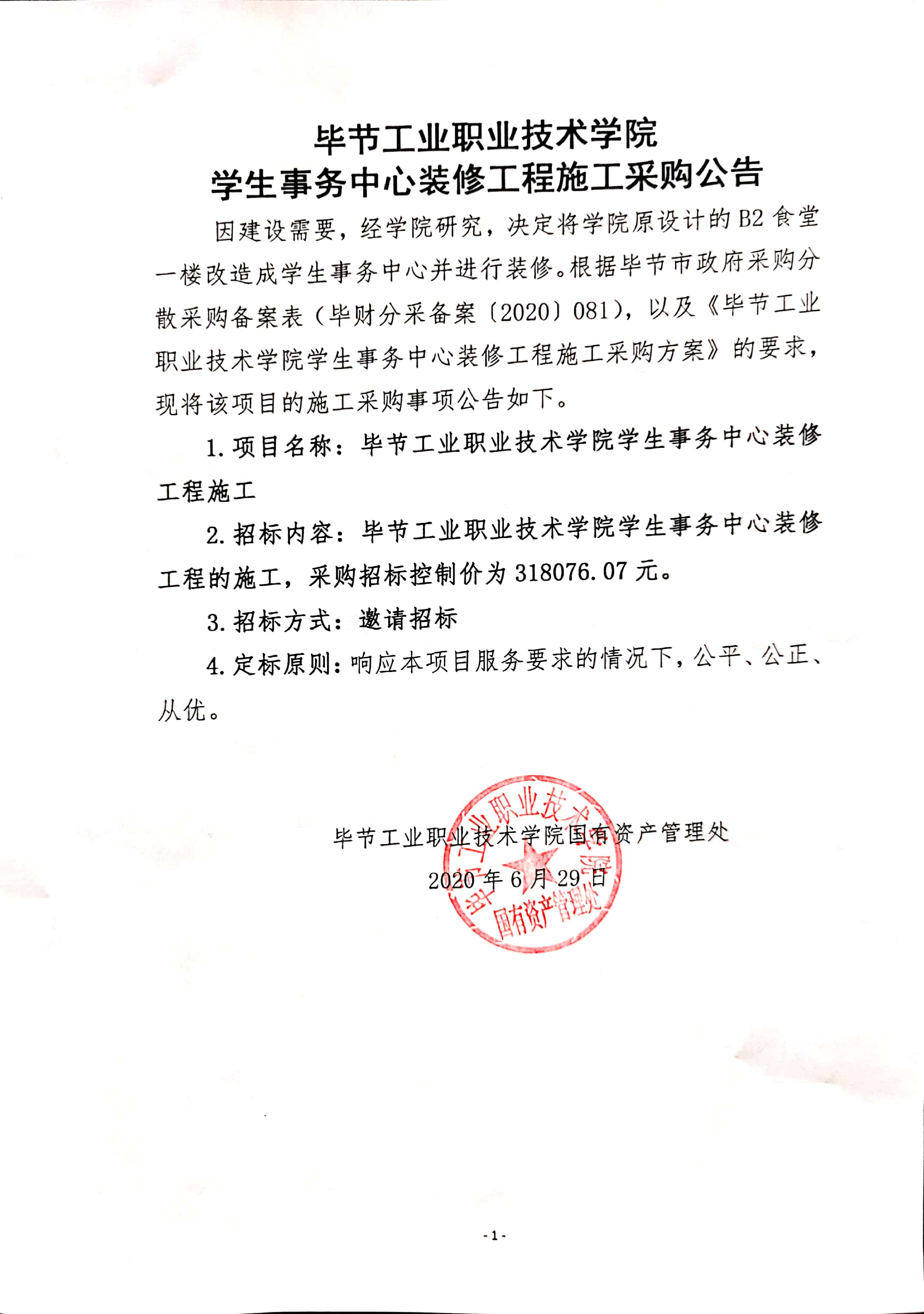 畢節(jié)工業(yè)職業(yè)技術(shù)學(xué)院學(xué)生事務(wù)中心裝修工程施工采購公告