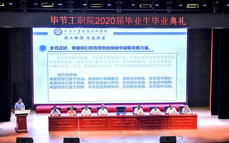 歲月正好,希望你們?cè)谟屑寄艿乃枷胫芯`放青春光彩。畢節(jié)工職院培養(yǎng)的學(xué)生要有技能的思想,就是要掌握適應(yīng)生產(chǎn)生活的技藝能力和熟練技術(shù),學(xué)有所成,學(xué)有所能,學(xué)有所用。畢業(yè)之后,我們很多同學(xué)從事的可能都是一線的、平凡的工作。但無(wú)論在哪個(gè)崗位上,心中一定要有夢(mèng)想。只有心中有夢(mèng),眼中有光,胸中有情,素履以往,才能讓個(gè)人夢(mèng)想與時(shí)代發(fā)展同行同向,讓夢(mèng)想在砥礪奮進(jìn)中實(shí)現(xiàn)綻放。愿未來(lái)的你們一如既往,敢于有夢(mèng)、勇于追夢(mèng)、勤于圓夢(mèng),成為社會(huì)需要的創(chuàng)新型技能人才,成為國(guó)家的棟梁。