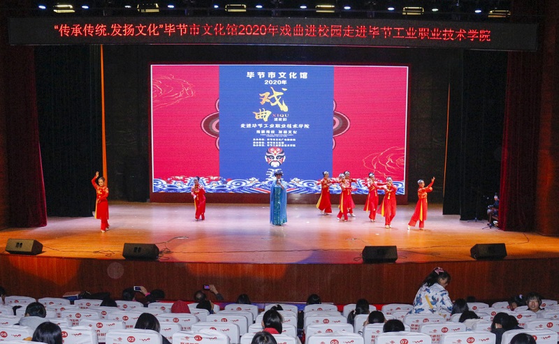戲曲,是中國(guó)傳統(tǒng)文化的瑰寶,是一種無(wú)形的歷史文化遺產(chǎn)。為弘揚(yáng)社會(huì)主義核心價(jià)值觀,讓學(xué)生更多地了解中華優(yōu)秀戲曲文化,傳承中華文明,提高學(xué)生的道德素養(yǎng),激發(fā)學(xué)生熱愛(ài)祖國(guó)文化、熱愛(ài)家鄉(xiāng)的美好情感。我院于2020年9月27日與畢節(jié)市文化廣電旅游局、畢節(jié)市文化館聯(lián)合舉辦“傳承傳統(tǒng)·發(fā)揚(yáng)文化”戲曲進(jìn)校園活動(dòng),為學(xué)校師生帶來(lái)戲曲傳統(tǒng)文化美的享受。