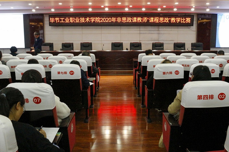 為深入學(xué)習(xí)貫徹習(xí)近平總書記關(guān)于教育的重要論述、全國教育大會(huì)精神,貫徹落實(shí)中共中央辦公廳、國務(wù)院辦公廳《關(guān)于深化新時(shí)代學(xué)校思想政治理論課改革創(chuàng)新的若干意見》《高等學(xué)校課程思政建設(shè)指導(dǎo)綱要》等文件精神,把思想政治教育貫穿人才培養(yǎng)體系,全面推進(jìn)學(xué)院課程思政建設(shè),發(fā)揮好每門課程的育人作用,提高學(xué)院人才培養(yǎng)質(zhì)量,培養(yǎng)擔(dān)當(dāng)民族復(fù)興大任的時(shí)代新人。2020年10月14日下午,畢節(jié)工業(yè)職業(yè)技術(shù)學(xué)院在行政樓9樓會(huì)議室舉行2020年非思政課教師"課程思政"教學(xué)比賽,全院教職工觀摩了比賽。