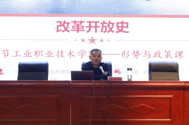 10月19日下午我院院長邱國援以“改革開放史”為主題在會議中心給畢節(jié)工業(yè)職業(yè)技術(shù)學院2020級學生上了一堂精彩紛呈的《形勢與政策》課。