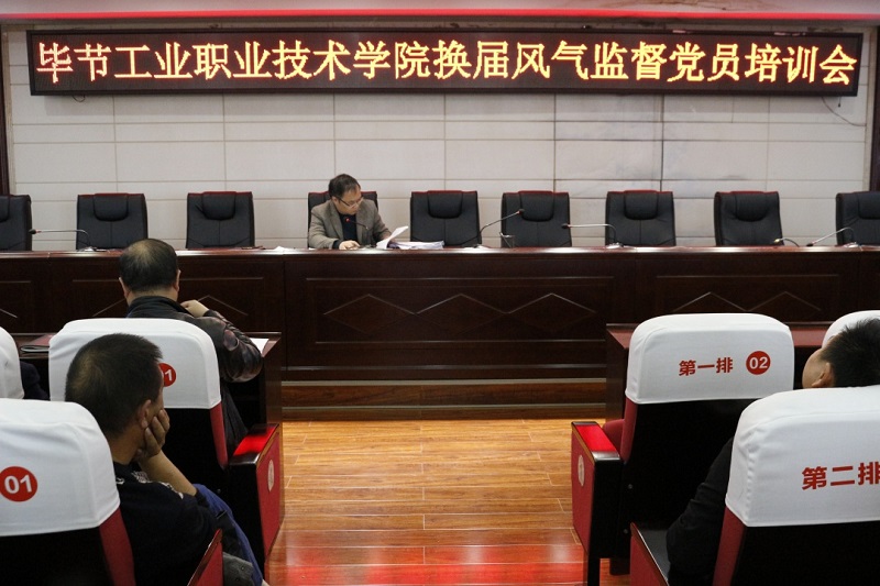 11月17日下午,畢節(jié)工業(yè)職業(yè)技術(shù)學院換屆風氣監(jiān)督黨員培訓會在九樓會議室召開,副縣級以上領(lǐng)導干部及全體黨員參加會議。