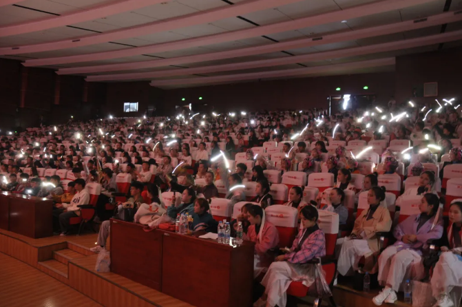 晚會在我院會議中心舉辦,畢節(jié)職業(yè)技術(shù)學(xué)院黨委委員、副院長易鵬,學(xué)院黨委委員、副院長黃河,畢節(jié)職業(yè)技術(shù)學(xué)院心理咨詢中心主任、畢節(jié)市心理健康研究與服務(wù)中心主任、畢節(jié)市心理學(xué)會會長孫叢亮及兩校師生代表共800余人一同欣賞晚會。
