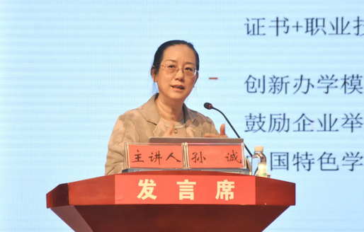 ▲中國教育科學研究院職業(yè)教育與繼續(xù)教育研究所所長孫誠作“新時期職業(yè)教育發(fā)展的時代背景、內(nèi)涵要義與建設路徑”專題講座