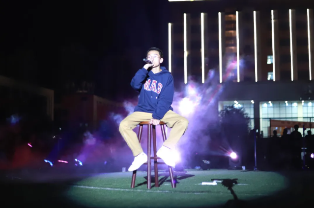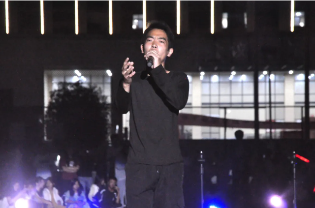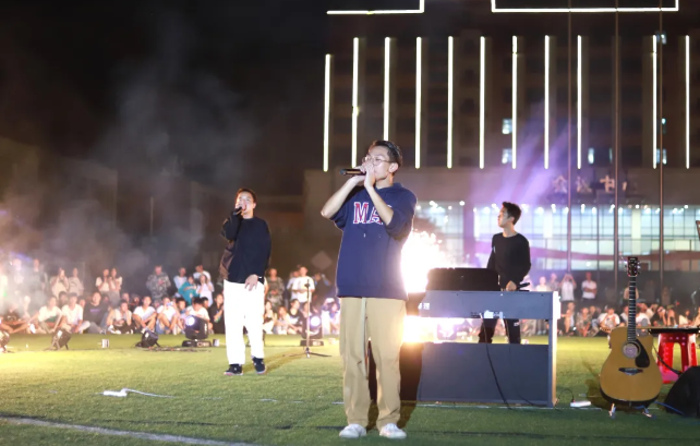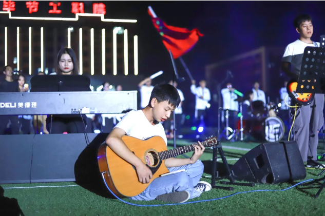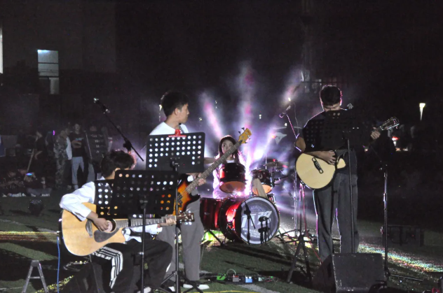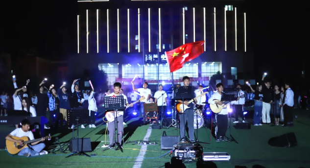 樂隊(duì)的歌聲引起了全場師生的共鳴