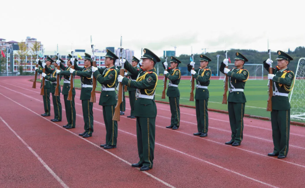 伴隨著雄壯的國(guó)歌聲,鮮艷的五星紅旗升起在田徑場(chǎng)上空,開幕式正式開始。