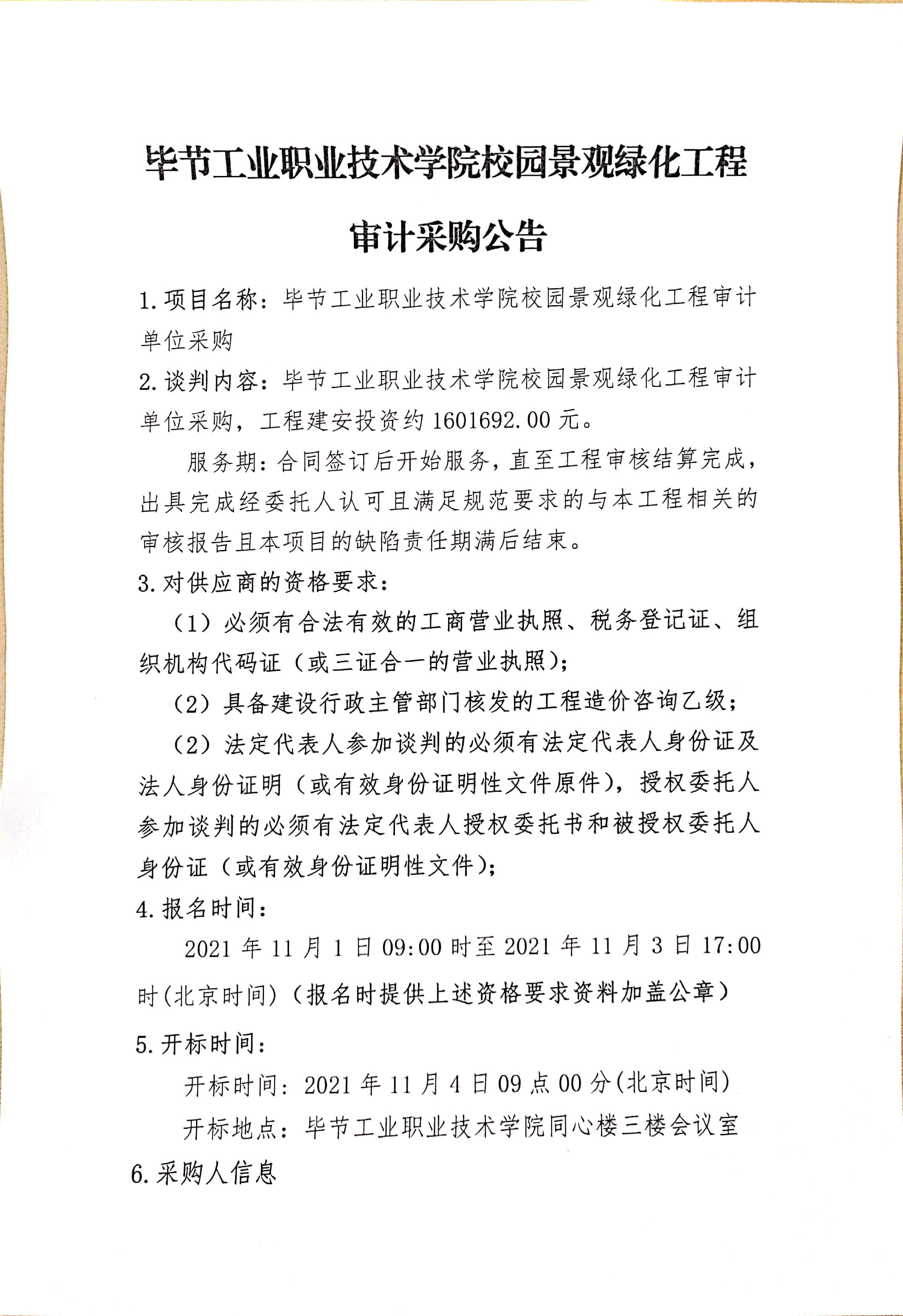 畢節(jié)工業(yè)職業(yè)技術學院校園景觀綠化工程審計采購公告