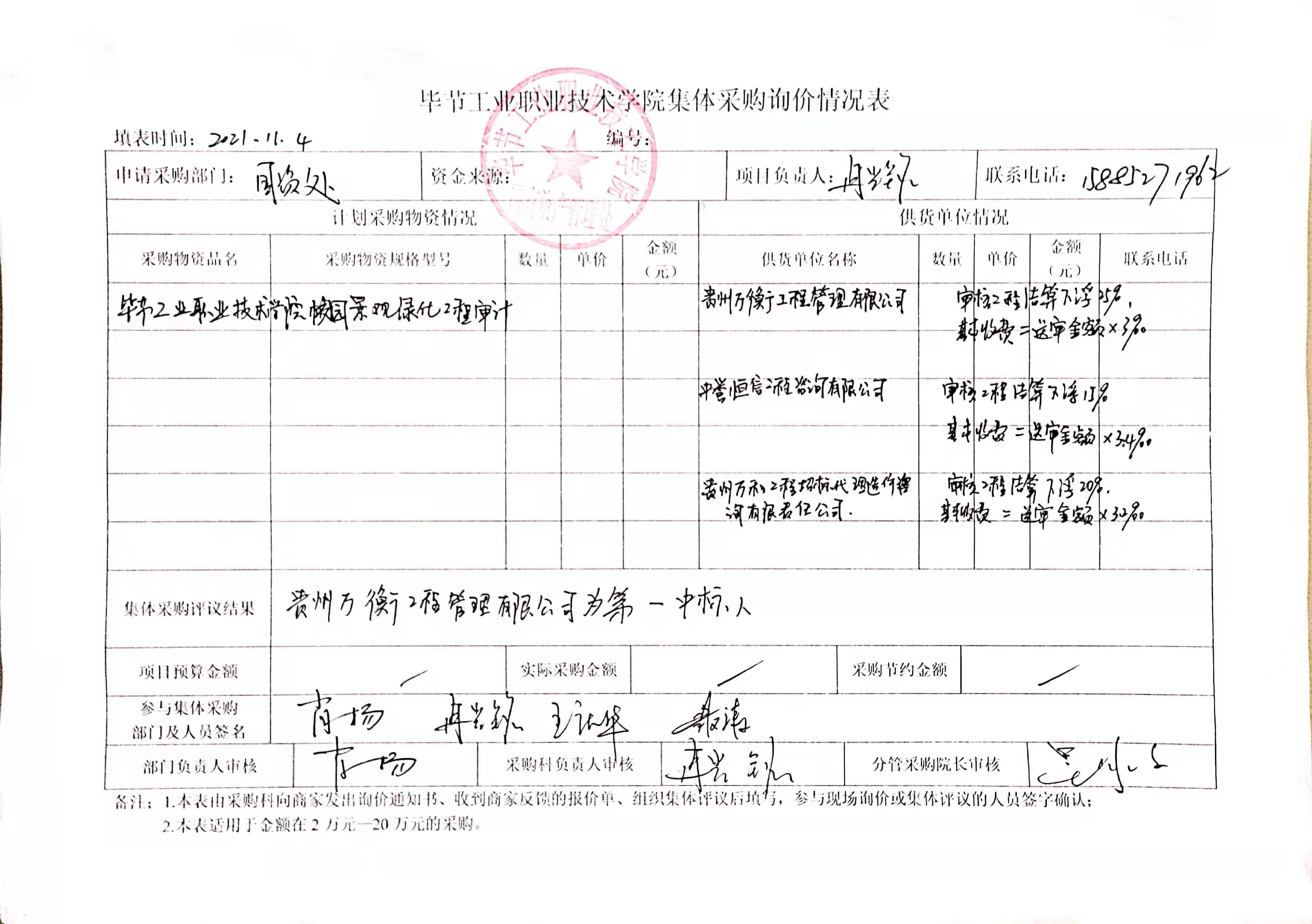 畢節(jié)工業(yè)職業(yè)技術(shù)學(xué)院校園景觀綠化工程審計中標(biāo)公告