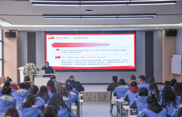 12月1日上午,學(xué)院黨委副書記、院長邱國援在拓海學(xué)院會(huì)議室,為社會(huì)服務(wù)系師生作《學(xué)好“四史”·踐行使命》專題宣講。教師和學(xué)生代表100余人參加學(xué)習(xí)。