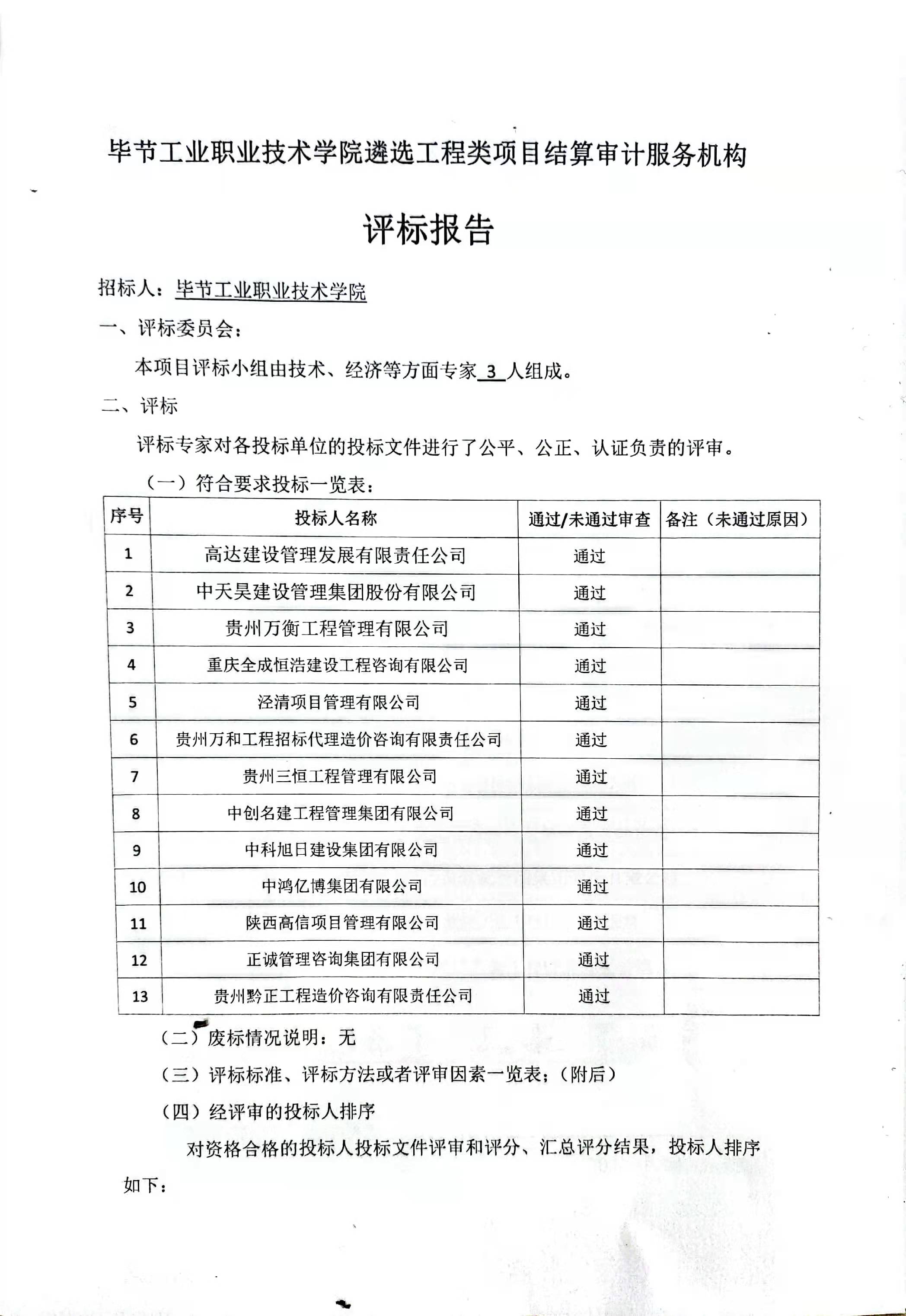 畢節(jié)工業(yè)職業(yè)技術(shù)學(xué)院遴選工程類項(xiàng)目結(jié)算審計(jì)服務(wù)機(jī)構(gòu)評(píng)價(jià)報(bào)告