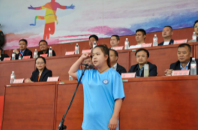 緊接著,運(yùn)動員代表與裁判代表上臺宣誓,表達(dá)了他們對體育精神的嚴(yán)肅態(tài)度,并表示將在接下來的比賽中遵守比賽規(guī)則,力求賽出水平、賽出風(fēng)格、賽出成績。