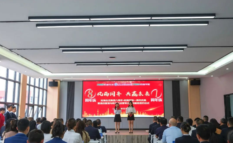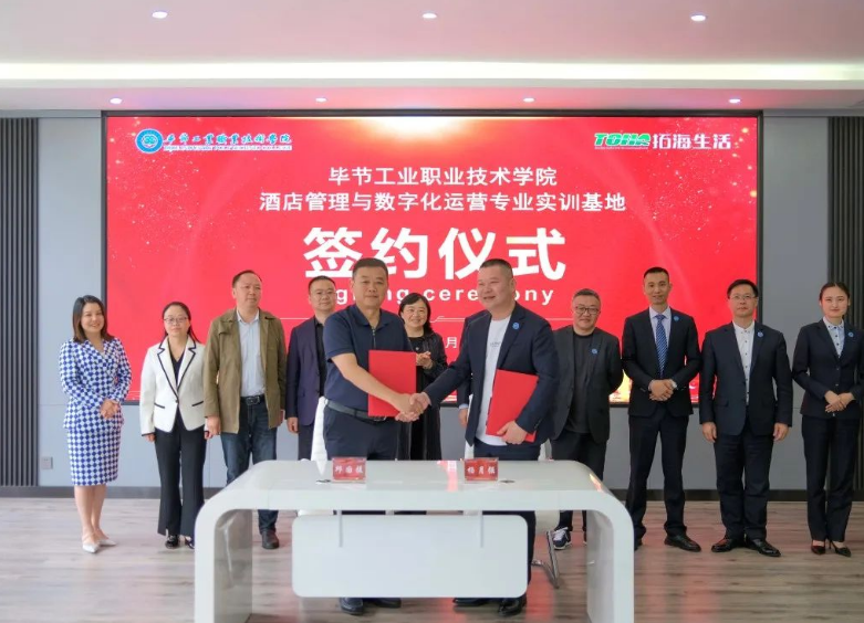 5月12日,畢節(jié)工業(yè)職業(yè)技術(shù)學(xué)院拓海學(xué)院一周年成立儀式暨畢節(jié)工業(yè)職業(yè)技術(shù)學(xué)院酒店管理與數(shù)字化運(yùn)營(yíng)專(zhuān)業(yè)實(shí)訓(xùn)基地簽約儀式在拓海學(xué)院會(huì)議室舉行。學(xué)院黨委副書(shū)記、院長(zhǎng)邱國(guó)援,黨委委員、副院長(zhǎng)黃瑛、黃河、吳家文、黃文碧,拓海學(xué)院名譽(yù)院長(zhǎng)、拓海生活集團(tuán)總裁楊月強(qiáng),拓海學(xué)院院長(zhǎng)林彬出席儀式,拓海集團(tuán)相關(guān)領(lǐng)導(dǎo)、員工代表及學(xué)院社會(huì)服務(wù)系師生代表參加儀式。 儀式現(xiàn)場(chǎng) 邱國(guó)援在致辭中指出,校企雙方共建拓海學(xué)院實(shí)訓(xùn)基地,為相關(guān)專(zhuān)業(yè)學(xué)生提供了理實(shí)一體化教學(xué)場(chǎng)地和實(shí)習(xí)實(shí)訓(xùn)平臺(tái),改善了物業(yè)管理、酒店管理等專(zhuān)業(yè)的教學(xué)、實(shí)訓(xùn)條件,使我院辦學(xué)條件、人才培養(yǎng)體系和教學(xué)質(zhì)量得到不斷提高。同時(shí),拓海集團(tuán)積極參與物業(yè)管理專(zhuān)業(yè)人才培養(yǎng)方案修訂,從行業(yè)、企業(yè)角度提出了很多人才培養(yǎng)的意見(jiàn)建議,邀請(qǐng)行業(yè)專(zhuān)家來(lái)校講學(xué),親自授課,使學(xué)生專(zhuān)業(yè)知識(shí)得到有力提升,使物業(yè)管理專(zhuān)業(yè)人才培養(yǎng)體系更加符合行業(yè)需求。下一步,希望校企雙方繼續(xù)深化校企合作機(jī)制、持續(xù)擴(kuò)大合作范圍、協(xié)同提升合作質(zhì)量,充分發(fā)揮拓海生活服務(wù)集團(tuán)在物業(yè)管理方面的專(zhuān)業(yè)優(yōu)勢(shì),在人才培養(yǎng)方案、課程教學(xué)、實(shí)習(xí)實(shí)訓(xùn)、教師培養(yǎng)等方面提供企業(yè)建議和技術(shù)指導(dǎo),在教育教學(xué)、學(xué)生管理、素質(zhì)培養(yǎng)、技能提升等方面與學(xué)院交換經(jīng)驗(yàn),提升教師專(zhuān)業(yè)素質(zhì),強(qiáng)化學(xué)生技能提升,推進(jìn)“工學(xué)結(jié)合”教學(xué)模式,共同提高學(xué)院育人質(zhì)量。 邱國(guó)援在儀式上致辭 楊月強(qiáng)表示,過(guò)去一年,校企雙方本著優(yōu)勢(shì)互補(bǔ)、資源共享、互惠雙贏、共同發(fā)展的原則,對(duì)校企合作模式進(jìn)行了深層次的探索、創(chuàng)新與實(shí)踐,拓海學(xué)院的成立不僅推動(dòng)了產(chǎn)教融合,也為學(xué)生提供了優(yōu)質(zhì)的實(shí)訓(xùn)基地,為企業(yè)提供了強(qiáng)有力的人才保障。下一步,企業(yè)將繼續(xù)聯(lián)手學(xué)院不斷創(chuàng)新,共同培養(yǎng)高素質(zhì)技術(shù)技能型人才,構(gòu)建校企合作雙贏局面,助推職業(yè)教育改革和地方經(jīng)濟(jì)社會(huì)高質(zhì)量發(fā)展。 楊月強(qiáng)在儀式上講話(huà) 儀式上,邱國(guó)援代表學(xué)院與拓海生活集團(tuán)簽訂了《畢節(jié)工業(yè)職業(yè)技術(shù)學(xué)院酒店管理與數(shù)字化運(yùn)營(yíng)專(zhuān)業(yè)實(shí)訓(xùn)基地(中心)建設(shè)合作協(xié)議》。學(xué)院與拓海生活集團(tuán)將再次攜手,共建畢節(jié)工業(yè)職業(yè)技術(shù)學(xué)院酒店管理與數(shù)字化運(yùn)營(yíng)專(zhuān)業(yè)實(shí)訓(xùn)基地,共同承擔(dān)科研項(xiàng)目、實(shí)現(xiàn)信息共享,培養(yǎng)更多高質(zhì)量的技能人才,為畢節(jié)全面推進(jìn)鄉(xiāng)村振興提供有力的人才支撐。 簽約儀式現(xiàn)場(chǎng) 拓海學(xué)院院長(zhǎng)林斌、社會(huì)服務(wù)系主任呂振欣為優(yōu)秀學(xué)生羅達(dá)麗、李定奎頒發(fā)榮譽(yù)證書(shū) 優(yōu)秀學(xué)生代表羅達(dá)麗發(fā)言 儀式中的精彩節(jié)目