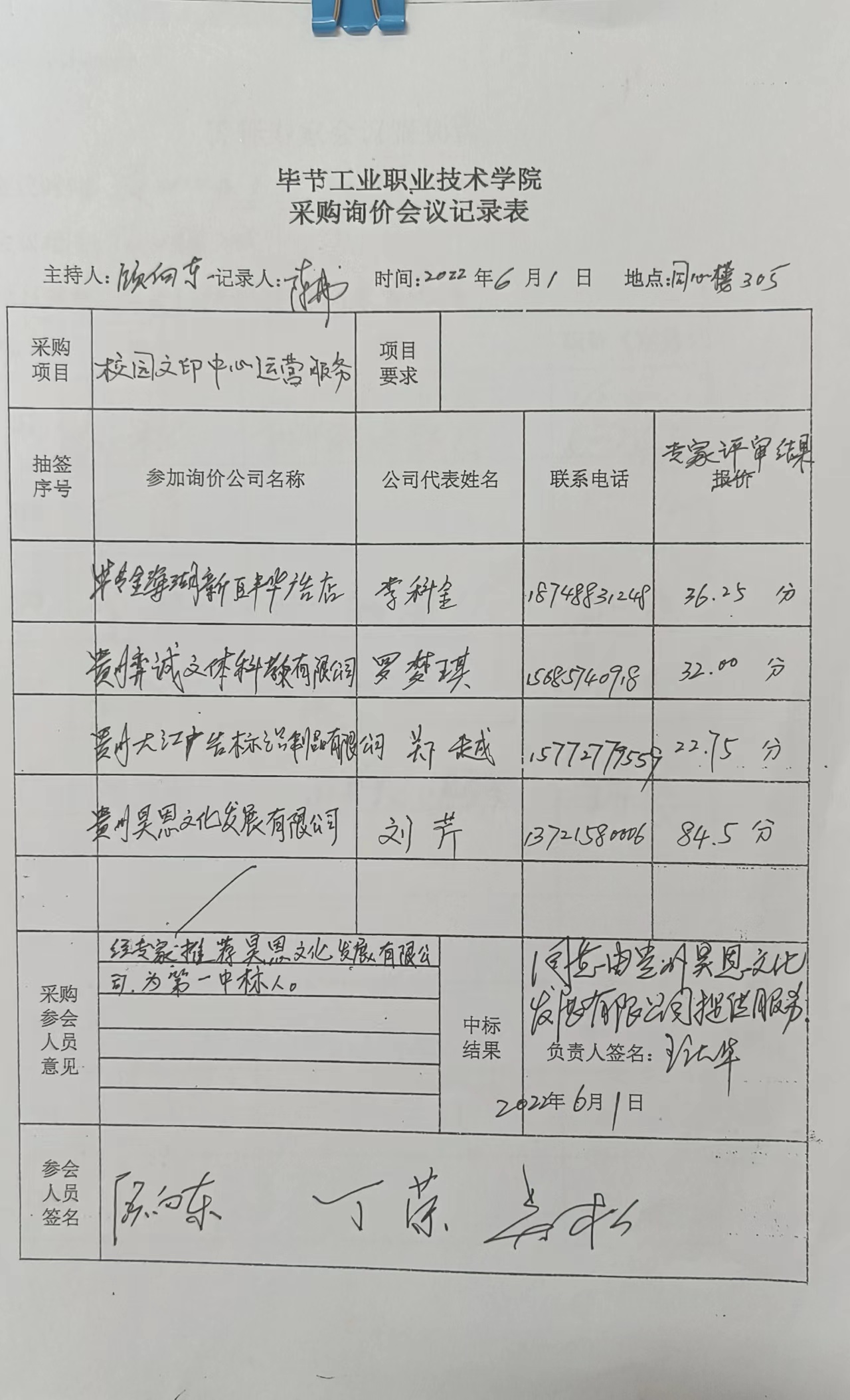 畢節(jié)工業(yè)職業(yè)技術(shù)學(xué)院采購詢價(jià)會(huì)議記錄表公示