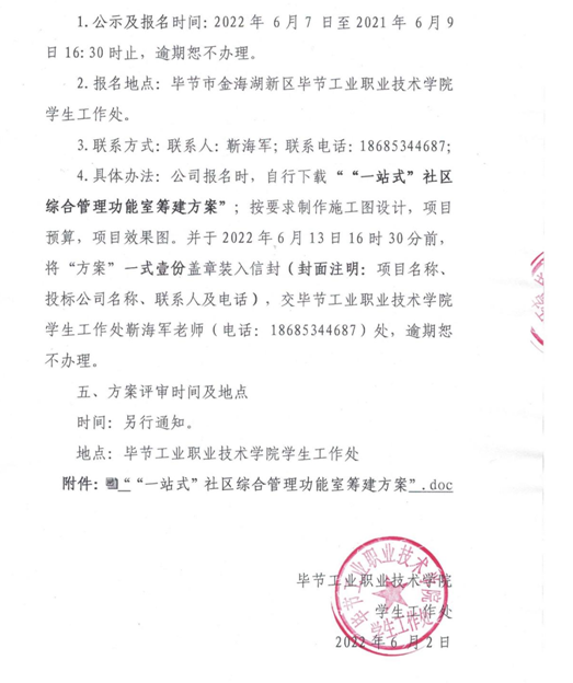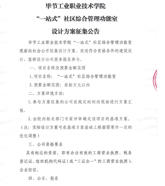畢節(jié)工業(yè)職業(yè)技術(shù)學(xué)院“一站式”社區(qū)綜合管理功能室設(shè)計(jì)方案征集公告