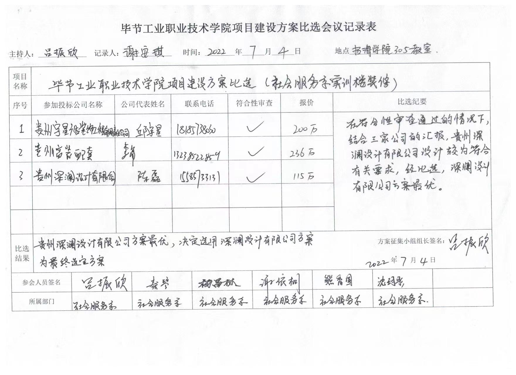 畢節(jié)工業(yè)職業(yè)技術(shù)學(xué)院社會(huì)服務(wù)系實(shí)訓(xùn)樓裝修項(xiàng)目建設(shè)方案比選結(jié)果公示