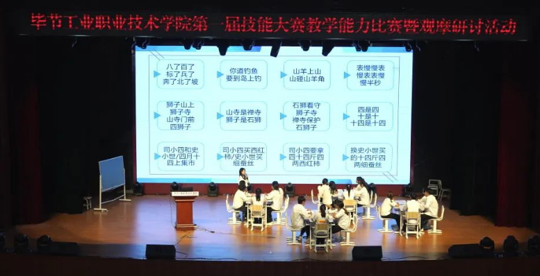 2022年6月29日,畢節(jié)工業(yè)職業(yè)技術學院第一屆技能大賽教學能力比賽在會議中心圓滿舉行。此次競賽以提升教師的教學能力為主旨,力求讓我院教師進一步樹立先進教育教學理念,應用現(xiàn)代教學方法,堅持知識傳授、能力培養(yǎng)與價值教育相結(jié)合,助推學院高質(zhì)量內(nèi)涵式發(fā)展。