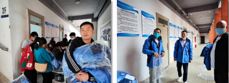 當實施靜默管理后,我院80余名教職工連夜趕回學校,他們勇毅逆行、不畏風險,義無反顧地奮戰(zhàn)在抗擊疫情的一線,他們不僅為全院師生帶來感動,更為疫情防控注入必勝的決心。由于時間緊、任務重,他們大多數來得匆忙,恰遇氣溫驟降,教職工們著裝單薄、無換洗衣物便成了大問題。桐城市創(chuàng)意服裝有限公司得知情況后,立即決定將為22級新生準備的校服中拿出沖鋒衣80余件無償捐獻給學院抗疫一線教職工保暖所用。