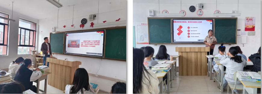 課堂上,思政教師堅持理論知識與現(xiàn)實生活緊密聯(lián)系,及時將黨的二十大精神和鮮活的實踐案例引入課程,堅定學(xué)生的信仰信念信心,增強(qiáng)學(xué)生對黨和國家的深厚感情。