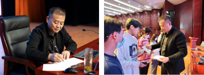 “祝你生日快樂(lè)……”隨著背景音樂(lè)響起,過(guò)生日的同學(xué)們帶著驚喜的笑容走上講臺(tái),享受著這份專(zhuān)屬的溫馨,現(xiàn)場(chǎng)氣氛熱烈,在場(chǎng)同學(xué)們熱情地送上陣陣掌聲與歡呼?!安回?fù)韶華、砥礪前行,做有理想、有信念、有擔(dān)當(dāng)?shù)男聲r(shí)代高素質(zhì)技能人才”“奮發(fā)前行,做與眾不同的畢節(jié)工職院技能型新青年”……一句句寫(xiě)在明信片上的青春寄語(yǔ)既是院長(zhǎng)對(duì)新同學(xué)的期待,更是院長(zhǎng)對(duì)新同學(xué)特別生日的別樣祝福。 在16位同學(xué)的生日“大禮包”中,一張親筆簽名的青春寄語(yǔ)明信片成為最有意義的“生日祝福”。明信片的正面展現(xiàn)了校園內(nèi)一年四季的美景與青春芳華,表達(dá)了學(xué)院對(duì)新同學(xué)的歡迎與祝福。而在明信片的背面,是一句句手寫(xiě)的青春寄語(yǔ)與院長(zhǎng)的親筆簽名,將思政融于校園生活,用生動(dòng)具體的祝福引導(dǎo)新同學(xué)扣好人生的“第一??圩印?,引導(dǎo)同學(xué)們珍惜時(shí)光、不負(fù)韶華、不負(fù)青春。這場(chǎng)別樣的“開(kāi)學(xué)第一課”,讓同學(xué)們剛進(jìn)入學(xué)校就感受到了畢節(jié)工職院這個(gè)大家庭的溫暖。 機(jī)電工程系學(xué)生高安會(huì)說(shuō):“今天是一個(gè)特別的日子,我19歲了,在沒(méi)有家人的陪伴下過(guò)生日,心里未免有些許失落,但在“開(kāi)學(xué)第一課”看到我跟其他同學(xué)的姓名出現(xiàn)在會(huì)場(chǎng)的屏幕上,緊接著邱院長(zhǎng)和同學(xué)為我們送上生日的祝福,真是既驚喜又感動(dòng),對(duì)我來(lái)說(shuō)這是19年以來(lái)最為難忘的一次生日。作為一名大學(xué)生,我會(huì)時(shí)刻提醒自己,珍惜在大學(xué)生活的每一分每一秒,不讓時(shí)光虛度?!?/span> 信息工程學(xué)生廖英杰說(shuō):“報(bào)到當(dāng)天就真切地感受到了老師、同學(xué)們的熱情,在今天這個(gè)特別的日子,我還收到了學(xué)校領(lǐng)導(dǎo)親手寫(xiě)的明信片,這份入學(xué)‘禮物’讓我們特別高興,也感到特別溫馨。” 土木工程系同學(xué)歐宇鵬說(shuō):“今天收到的禮物對(duì)我來(lái)說(shuō)有著很特別的意義。里面飽含著學(xué)校和院長(zhǎng)對(duì)我們的期望,我一定會(huì)努力學(xué)習(xí)、不斷提升自己的能力,發(fā)揮自己的價(jià)值,做一個(gè)對(duì)社會(huì)有用的人?!?/p>