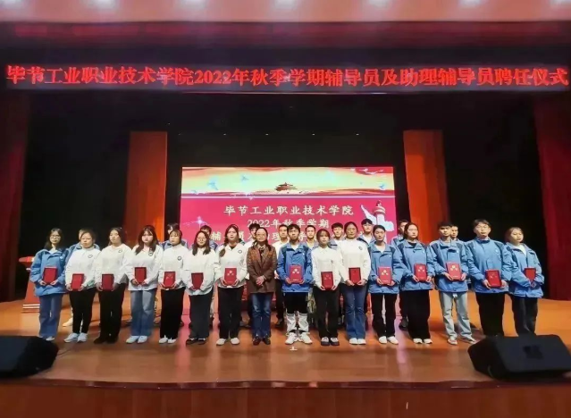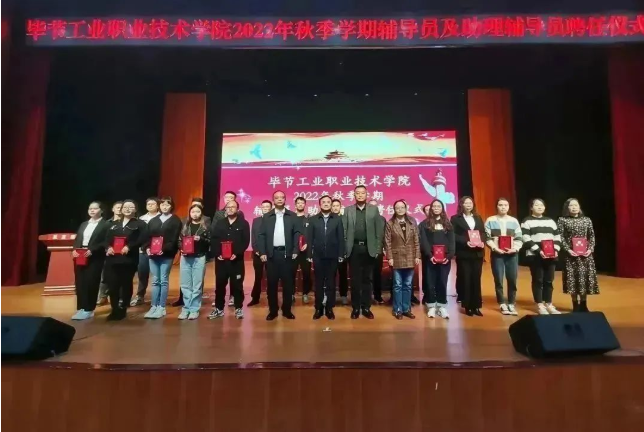 2022年11月10日,畢節(jié)工業(yè)職業(yè)技術學院輔導員及助理輔導員聘任儀式在會議中心舉行。學院黨委書記李涌,黨委副書記、院長邱國援,黨委副書記付善華,黨委委員、副院長黃文碧出席會議。會議由黃文碧主持。