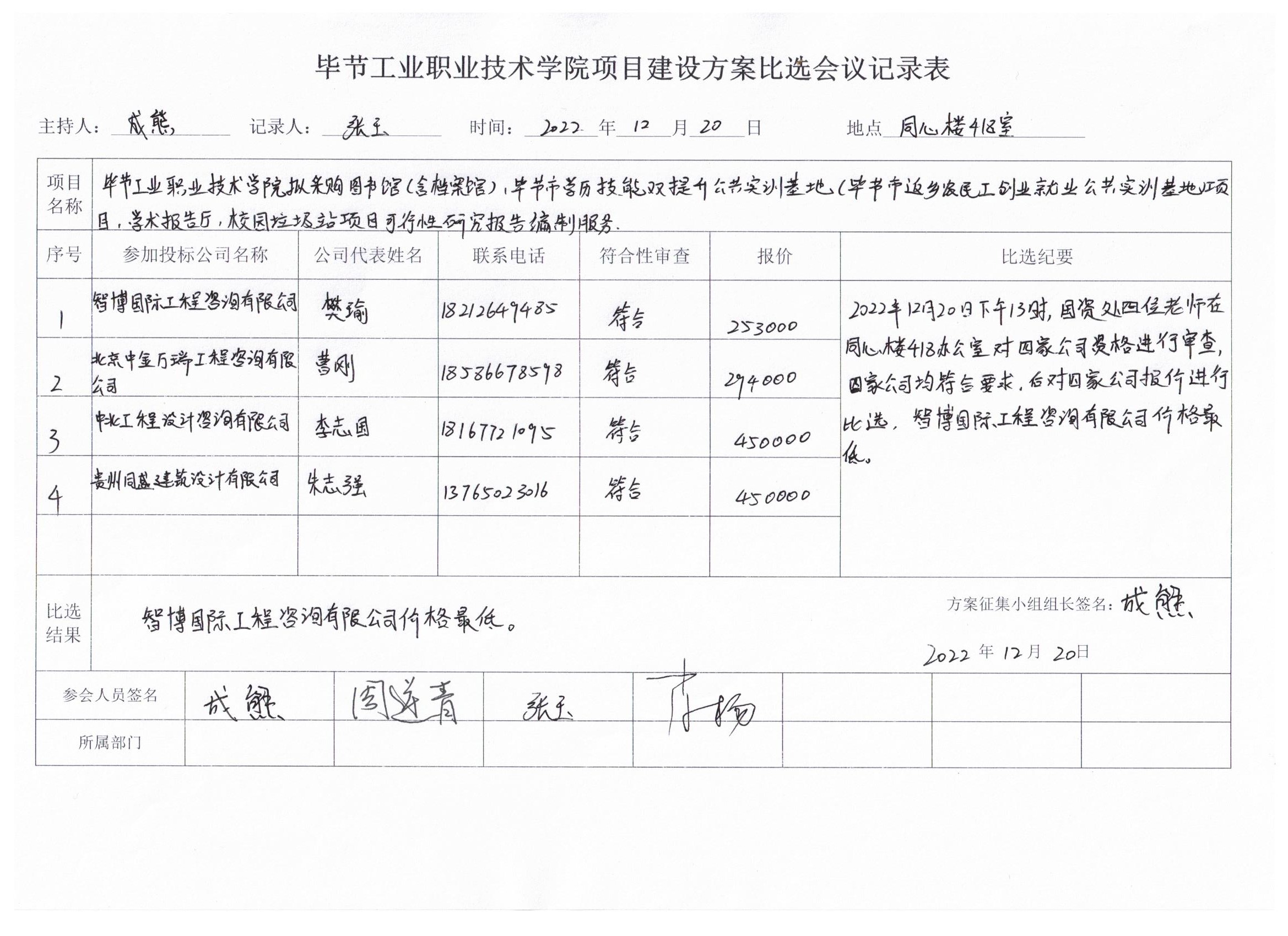 畢節(jié)工業(yè)職業(yè)技術學院擬采購圖書館(含檔案館)、畢節(jié)市職業(yè)技能學歷雙提升公共實訓基地(畢節(jié)市返鄉(xiāng)農(nóng)民工創(chuàng)業(yè)就業(yè)公共實訓基地)項目、學術報告廳、校園垃圾站可行性研究方案、相關規(guī)劃、評估報告編制服務詢價結果公示