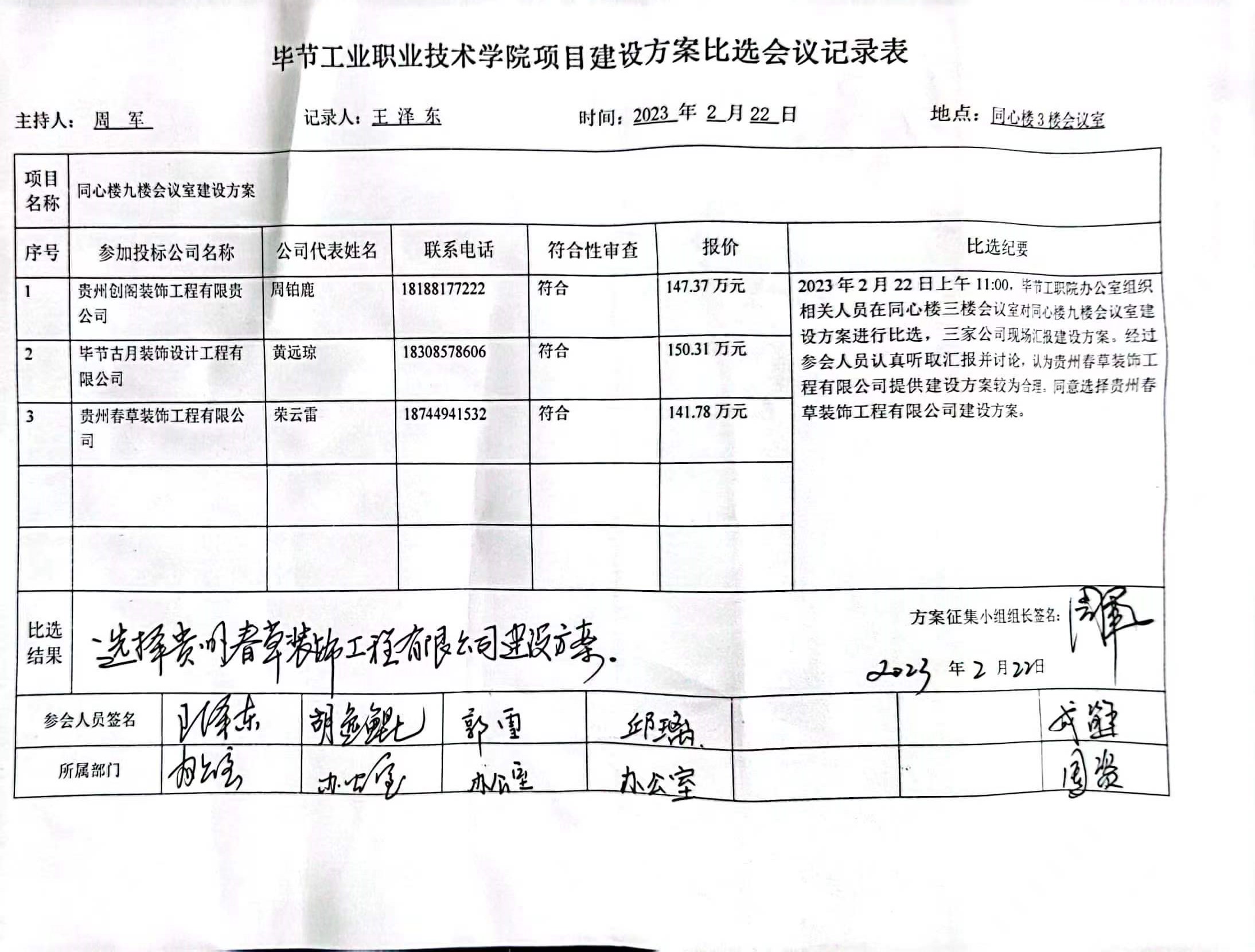 畢節(jié)工業(yè)職業(yè)技術(shù)學(xué)院同心樓九樓會議室建設(shè)方案