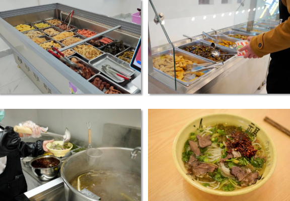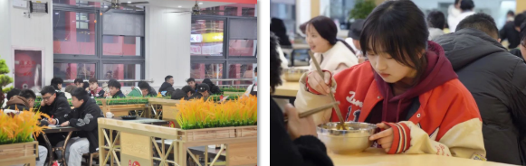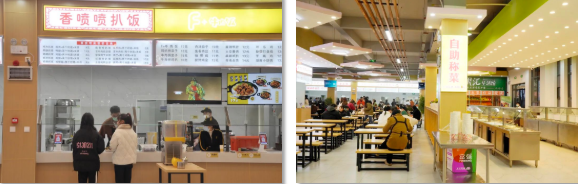 這里有 寬敞的空間 典雅的桌椅 潔凈的地面 可口的飯菜 羊肉粉 炒飯 自助餐 奶茶 水果 甜點 在這里 你總能找到 讓你充滿食欲的那份美味 走進新食堂 小編隨機采訪了幾位就餐的同學(xué) 大家都對新食堂表示滿意 “我們的新食堂 顏值高 味道好 從今天起 我再也不羨慕別人家的食堂了” “學(xué)校為我們提供了新的就餐選擇 讓我和同學(xué)又有了約飯新去處” “簡直就是我們這種‘干飯人’的福音” 新食堂帶給了學(xué)院新的活力 帶給了同學(xué)們更好的就餐條件 同學(xué)們 在等什么 還不快來體驗一下!