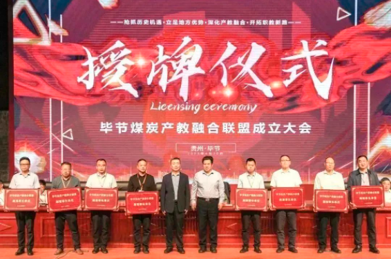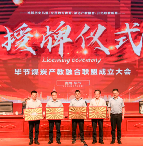 (省教育廳副廳長楊天儀向畢節(jié)煤炭產(chǎn)教融合聯(lián)盟理事長單位授牌)