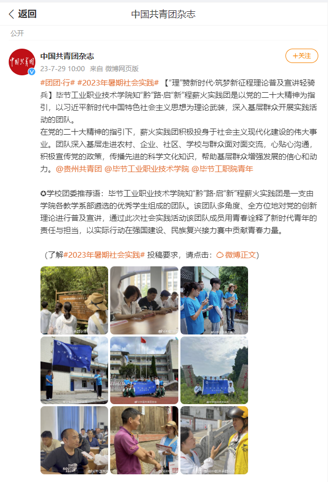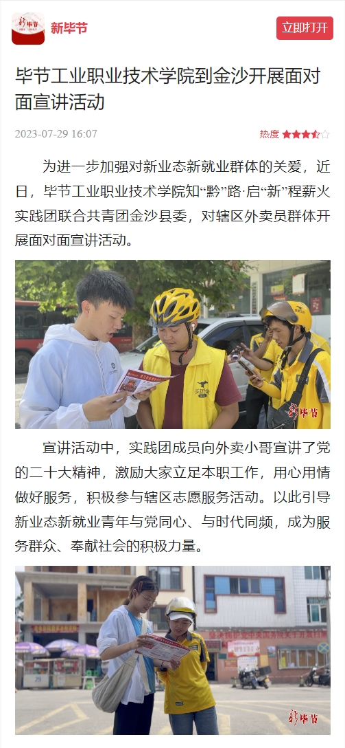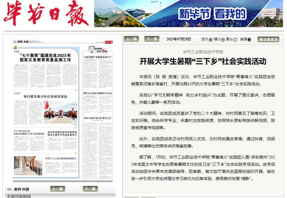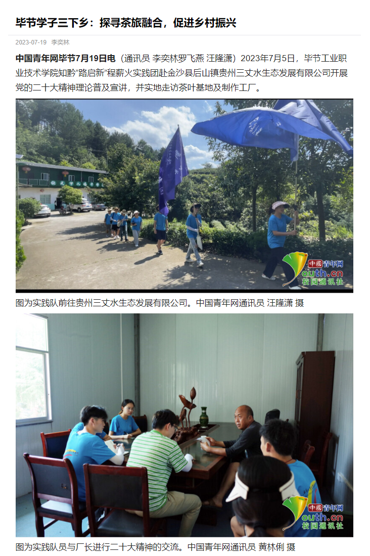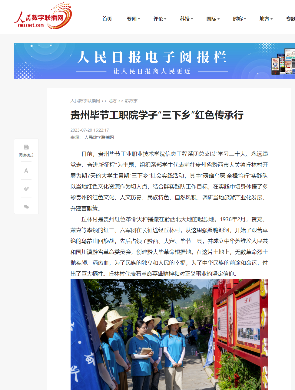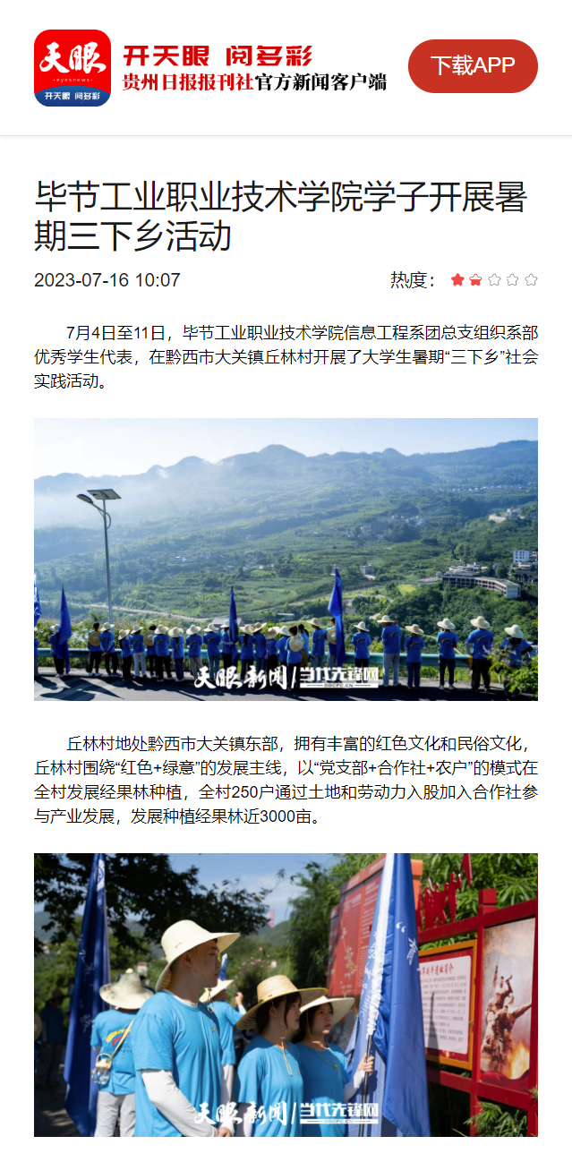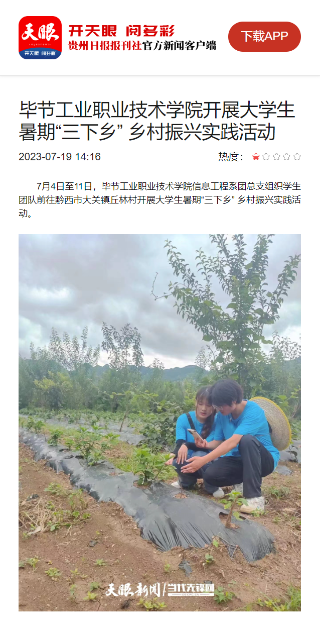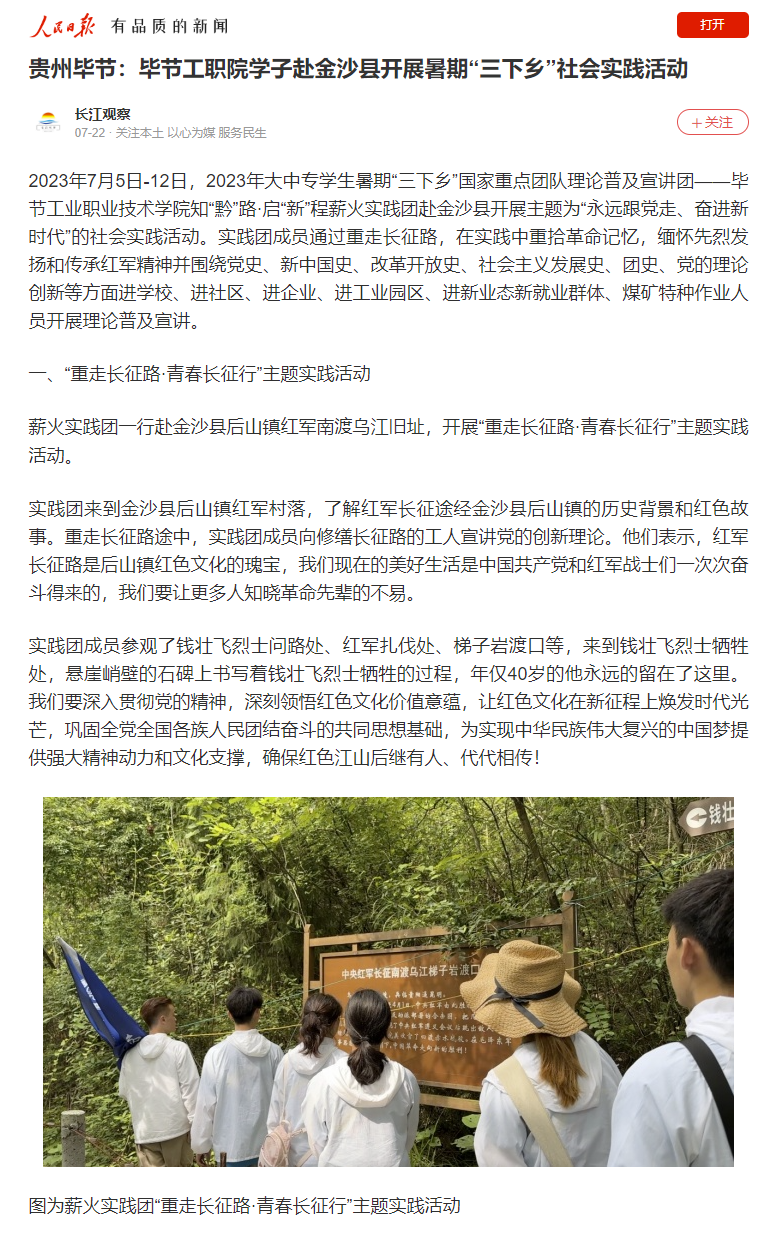 在我院今年暑期“三下鄉(xiāng)”社會實(shí)踐活動(dòng)中,22支實(shí)踐隊(duì)走進(jìn)基層、社區(qū)、農(nóng)村,精心開展主題鮮明、形式多樣、有內(nèi)涵、有質(zhì)量的實(shí)踐活動(dòng),足跡遍布黔東南州榕江縣兩汪鄉(xiāng)、畢節(jié)市赫章縣海雀村、黔西市大關(guān)鎮(zhèn)丘林村、金沙縣后山鎮(zhèn),七星關(guān)區(qū)陰底鄉(xiāng)羅雄村、先鋒村等地,選題覆蓋了黨史學(xué)習(xí)教育、鄉(xiāng)村振興、優(yōu)秀傳統(tǒng)文化傳承、理論宣講、教育關(guān)愛、成就觀察等多個(gè)方面。自暑期“三下鄉(xiāng)”社會實(shí)踐活動(dòng)啟動(dòng)以來,受到多家主流媒體的廣泛關(guān)注和報(bào)道,社會實(shí)踐工作的影響力顯著增強(qiáng)。