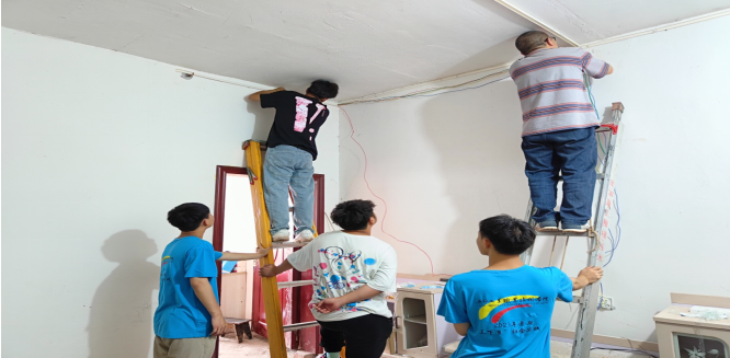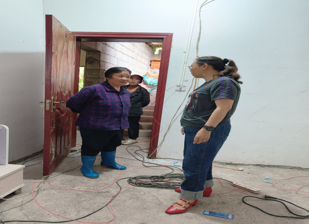 (圖為老師檢查村民家中存在安全隱患的電路畫面)