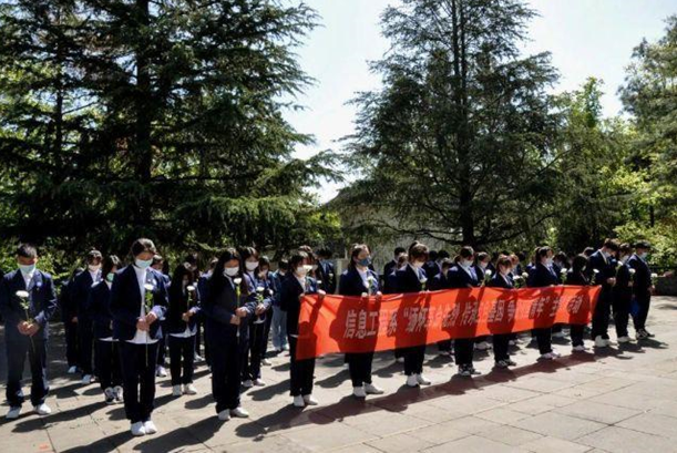 活動在莊嚴肅穆的國歌聲中拉開了序幕。團員代表向革命烈士敬獻花籃,全體老師、同學向烈士深鞠三躬,肅立默哀,寄托對革命烈士的無限緬懷與哀思,以表對英烈的崇高敬意。