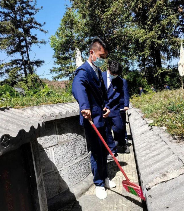 參加此次活動的同學們有序的分工,在烈士陵園內(nèi)清掃垃圾,清除雜草、雜物等,營造了一個干凈整潔的緬懷環(huán)境。