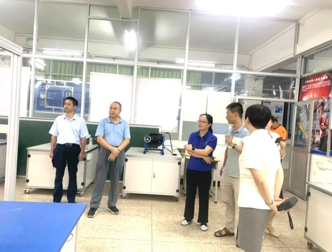 座談會上,廣州市機(jī)電技師學(xué)院副院長詹益全介紹了學(xué)院辦學(xué)情況,就校企合作資源、師資隊(duì)伍交流機(jī)制、教學(xué)管理方法、專業(yè)建設(shè)路徑、實(shí)訓(xùn)基地建設(shè)標(biāo)準(zhǔn)、科研項(xiàng)目申報(bào)展望等方面情況與我院一行進(jìn)行了深入交流。 (黃文碧一行參觀廣州市機(jī)電技師學(xué)院無人機(jī)專業(yè)) 9月6日下午,黃文碧一行到華南理工大學(xué)工程訓(xùn)練中心及廣州省機(jī)械研究所產(chǎn)教中心參觀學(xué)習(xí),深入了解當(dāng)下機(jī)電工程領(lǐng)域最新實(shí)訓(xùn)設(shè)備及競賽系統(tǒng),并調(diào)研華南理工大學(xué)工程訓(xùn)練中心,廣東省機(jī)械研究所產(chǎn)教融合現(xiàn)狀。 9月7日上午,黃文碧一行到廣州工程技術(shù)職業(yè)學(xué)院回訪考察并召開座談會,廣州工程技術(shù)職業(yè)學(xué)院校長羅三桂、 黨委副書記紀(jì)曉輝,副校長湯偉群及相關(guān)部門同志參會。 (黃文碧一行參觀廣州工程技術(shù)職業(yè)學(xué)院實(shí)訓(xùn)室) 湯偉群表示,東西部協(xié)作是鞏固拓展脫貧攻堅(jiān)成果、全面推進(jìn)鄉(xiāng)村振興的重大舉措,兩校自2020年協(xié)作以來建立了深厚的情感關(guān)系,多次互訪交流學(xué)習(xí),學(xué)校將繼續(xù)支持畢節(jié)工職院發(fā)展,強(qiáng)化干部教師互派交流機(jī)制,繼續(xù)鏈接優(yōu)秀企業(yè)資源向畢節(jié)工職院輸出,助力畢節(jié)工職院進(jìn)一步加強(qiáng)校企合作,深化產(chǎn)教融合,推動(dòng)一系列科研項(xiàng)目、教學(xué)改革、技能競賽成果落地落實(shí)。 黃文碧表示,在廣州工程技術(shù)職業(yè)學(xué)院的大力支持與幫扶下,我院在建章立制、專業(yè)建設(shè)、實(shí)訓(xùn)室建設(shè)、干部培訓(xùn)等方面取得明顯成效,希望廣州工程技術(shù)職業(yè)學(xué)院繼續(xù)在內(nèi)涵建設(shè)、專業(yè)建設(shè)、師資隊(duì)伍建設(shè)、技能競賽等方面提供支持和幫助。 會后,黃文碧一行調(diào)研參觀了廣州工程技術(shù)職業(yè)學(xué)院機(jī)電工程學(xué)院實(shí)訓(xùn)室。