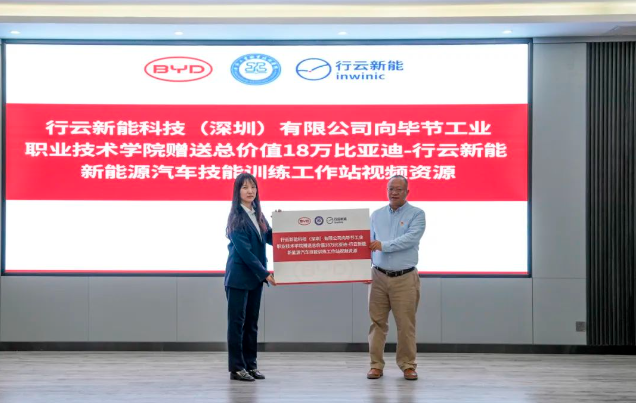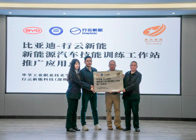(會(huì)議現(xiàn)場(chǎng)) 會(huì)上,邱國(guó)援介紹了畢節(jié)工業(yè)職業(yè)技術(shù)學(xué)院發(fā)展現(xiàn)狀、辦學(xué)特色、辦學(xué)理念等情況,并指出希望通過(guò)發(fā)揮企業(yè)的市場(chǎng)、技術(shù)、設(shè)備等方面優(yōu)勢(shì),共建人才培養(yǎng)基地,為學(xué)院相關(guān)專(zhuān)業(yè)學(xué)生提供優(yōu)質(zhì)技能學(xué)習(xí)條件,進(jìn)一步推動(dòng)校企合作,深化產(chǎn)教融合,實(shí)施人才精準(zhǔn)培養(yǎng)、企業(yè)精準(zhǔn)招聘,促進(jìn)人才鏈與產(chǎn)業(yè)鏈無(wú)縫銜接,探索校企合作辦學(xué)模式與運(yùn)行機(jī)制,創(chuàng)新技術(shù)技能人才培養(yǎng)體系,豐富職業(yè)教育內(nèi)涵建設(shè),進(jìn)一步發(fā)揮職業(yè)教育優(yōu)勢(shì)服務(wù)社會(huì)、行業(yè)、企業(yè)。 蔣平指出,希望與畢節(jié)工業(yè)職業(yè)技術(shù)學(xué)院在“產(chǎn)、學(xué)、訓(xùn)”等方面密切合作,創(chuàng)新人才培養(yǎng)模式,共同培養(yǎng)更多高素質(zhì)、高技能的應(yīng)用型人才,促進(jìn)共同發(fā)展。 王克靜指出,將在下一步的合作中提供全產(chǎn)業(yè)鏈人才培養(yǎng)生態(tài)系統(tǒng)服務(wù)整體解決方案,與學(xué)院、比亞迪共同開(kāi)發(fā)課程與教材,優(yōu)化課程體系,搭建“產(chǎn)、學(xué)、研”服務(wù)平臺(tái),推動(dòng)人才培養(yǎng)模式改革、管理體制機(jī)制創(chuàng)新,助力培養(yǎng)企業(yè)所需的高素質(zhì)技能人才。 (簽約儀式) 基地投入使用后,校企雙方將共同制定人才培養(yǎng)方案,通過(guò)企業(yè)工程師入校教學(xué)、教師定崗實(shí)習(xí)培訓(xùn),實(shí)現(xiàn)教師技術(shù)技能和教學(xué)能力雙提升,利用行業(yè)標(biāo)準(zhǔn)和企業(yè)、社會(huì)資源提高專(zhuān)業(yè)建設(shè)標(biāo)準(zhǔn),打造高質(zhì)量行業(yè)人才培養(yǎng)體系,切實(shí)提升我院人才培養(yǎng)質(zhì)量和水平。 (揭牌儀式) (授牌儀式) 會(huì)上,畢節(jié)工業(yè)職業(yè)技術(shù)學(xué)院還與比亞迪汽車(chē)股份有限公司、行云新能科技(深圳)有限公司舉行了簽約、揭牌、授牌儀式及新能源技術(shù)技能工作站捐贈(zèng)儀式。 (捐贈(zèng)儀式)