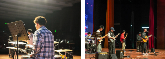 本次音樂會集結(jié)了學院的青年才俊們的才華與激情,以活力四溢的青春風格為主,臺上,樂隊成員青春昂揚,如同盛放的火焰,一首首動人心弦的音樂,使整個多功能廳回蕩著醉人的旋律。臺下,觀眾熱情洋溢,掌聲、歡呼聲響徹全場。 最后所有樂隊成員合唱的一曲《稻香》得到場下同學熱烈回應,大家紛紛加入合唱,共同用音樂展現(xiàn)同學們青春的風采。 音樂會的成功舉辦,不僅為學院愛好音樂的同學提供了一個展示才華的舞臺,也為大家?guī)砹瞬灰粯拥囊魳敷w驗。在未來的日子里,愿工職院的同學們懷揣著理想和熱情背著滿滿的期待從新的起點出發(fā),勇敢追逐自己的理想和未來!