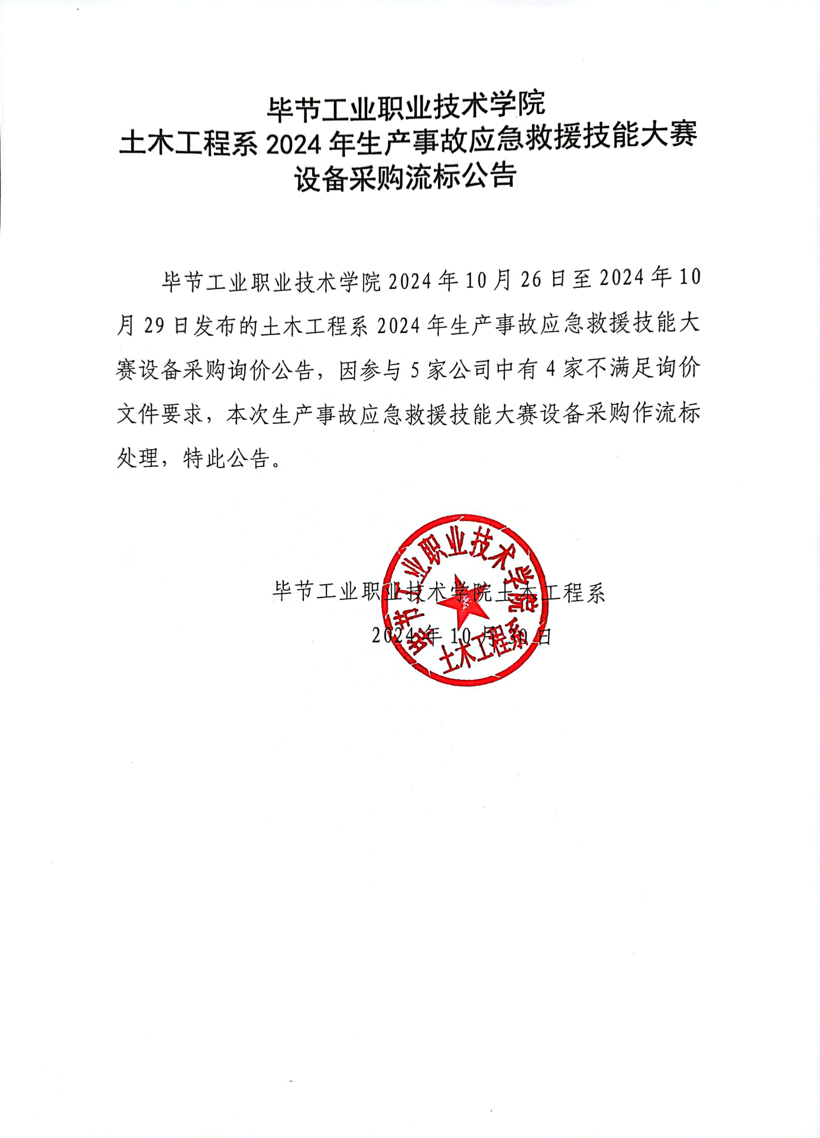 畢節(jié)工業(yè)職業(yè)技術(shù)學(xué)院土木工程系2024年生產(chǎn)事故應(yīng)急救援技能大賽設(shè)備采購流標(biāo)公告