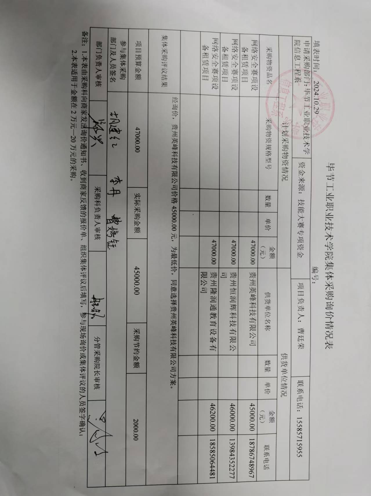 畢節(jié)工業(yè)職業(yè)技術(shù)學(xué)院網(wǎng)絡(luò)安全賽項租賃項目詢價結(jié)果公示