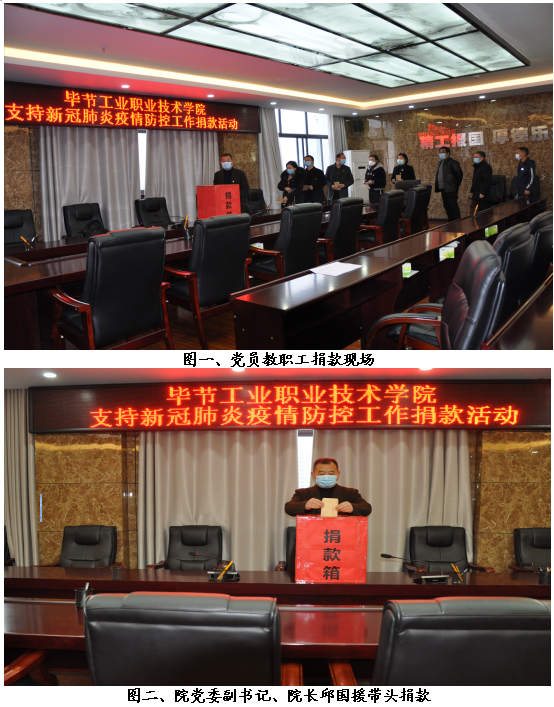 為積極應(yīng)對(duì)新冠肺炎疫情,全力支持當(dāng)前疫情防控,堅(jiān)決打贏疫情防控阻擊戰(zhàn),3月2日,畢節(jié)工業(yè)職業(yè)技術(shù)學(xué)院組織開(kāi)展支持疫情防控捐款活動(dòng),本次捐款共計(jì)17700元。