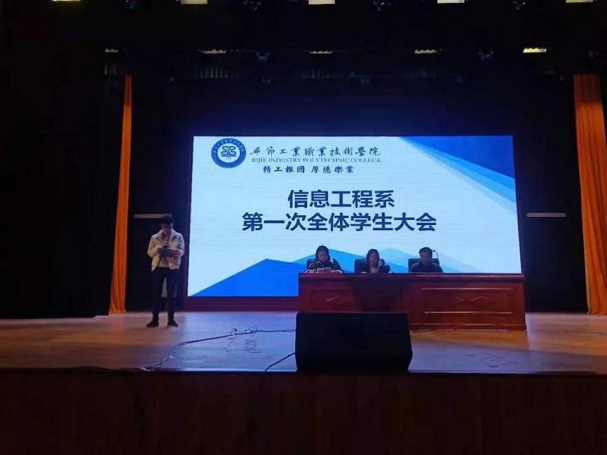 為進(jìn)一步加強(qiáng)系部管理與建設(shè),畢節(jié)工業(yè)職業(yè)技術(shù)學(xué)院信息工程系于2019年12月19日在學(xué)院會(huì)議中心召開學(xué)生大會(huì),到場的有信息工程系負(fù)責(zé)人黃亞男,系學(xué)生科胡蓉、潘愚老師、各班班主任及信息工程系全體學(xué)生。