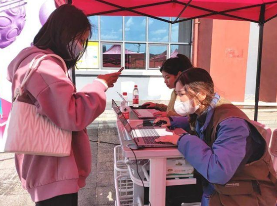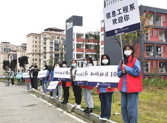 數(shù)名志愿者堅(jiān)守在校園各個(gè)點(diǎn)位