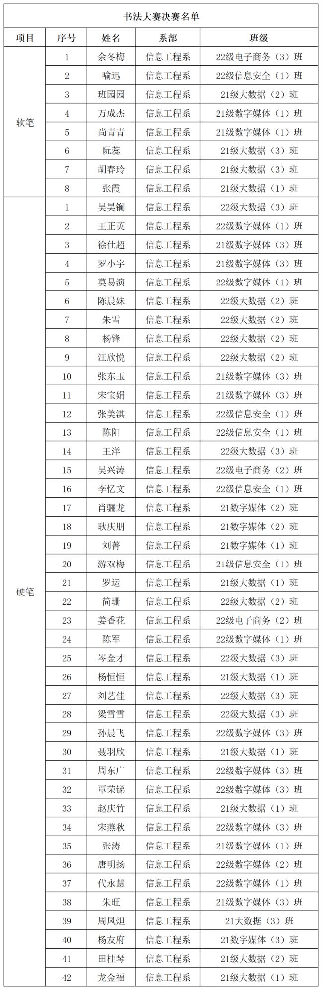 為深入學(xué)習(xí)貫徹黨的二十大精神,加強推進文化育人,充分展現(xiàn)當(dāng)代大學(xué)生青春氣息和精神風(fēng)貌,3月6日,信息工程系于厚德樓開展“翰墨歌盛世,青春頌黨恩”書法大賽初賽。