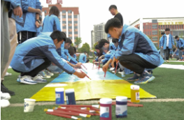 挑戰(zhàn)以班級為單位分為多個(gè)小組,將一幅完整的大型圖像根據(jù)小組數(shù)量拆分為多個(gè)部分,各小組分別抽取需要作畫部分進(jìn)行溝通創(chuàng)作,最后將小組作品按順序組合在一起,形成最終成品。