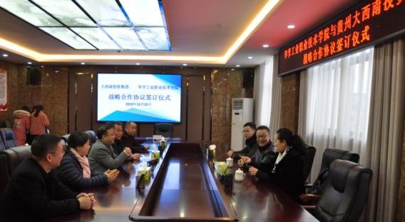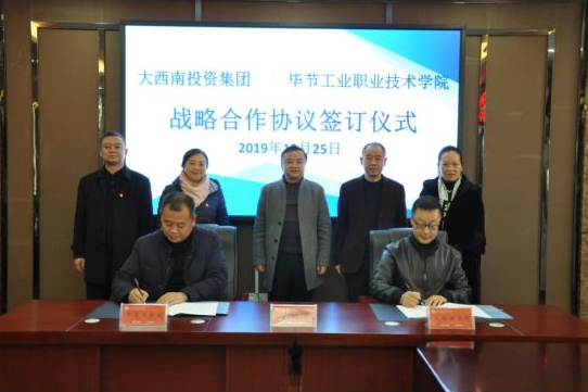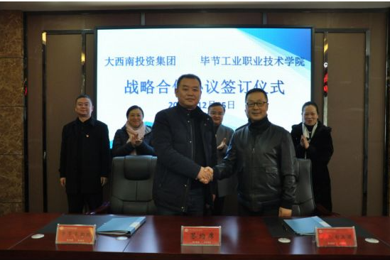 智慧共生,合作共贏。為深入貫徹《國家職業(yè)教育改革實施方案》,加強校企合作、人才培養(yǎng)和培訓(xùn),2019年12月25日,畢節(jié)工業(yè)職業(yè)技術(shù)學(xué)院與大西南投資集團(tuán)有限責(zé)任公司校企合作戰(zhàn)略協(xié)議簽訂儀式在學(xué)院同心樓三樓會議室正式舉行。