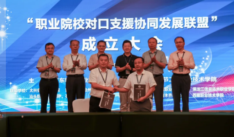 為深入貫徹落實習(xí)近平總書記關(guān)于東西部扶貧協(xié)作和對口支援工作的重要指示精神,全力推動?xùn)|西部協(xié)作高質(zhì)量發(fā)展。7月22日,由廣東輕工職業(yè)技術(shù)學(xué)院主辦、畢節(jié)工業(yè)職業(yè)技術(shù)學(xué)院承辦的“職業(yè)院校對口支援協(xié)同發(fā)展聯(lián)盟”成立大會在畢節(jié)舉行。聯(lián)盟由廣東輕工職業(yè)技術(shù)學(xué)院、畢節(jié)工業(yè)職業(yè)技術(shù)學(xué)院、大興安嶺職業(yè)學(xué)院、甘孜藏族自治州職業(yè)技術(shù)學(xué)校、廣東財貿(mào)職業(yè)學(xué)院、汕頭職業(yè)技術(shù)學(xué)院、和田職業(yè)技術(shù)學(xué)院、黑龍江信息技術(shù)職業(yè)學(xué)院、石河子職業(yè)技術(shù)學(xué)院、烏魯木齊職業(yè)大學(xué)結(jié)成。