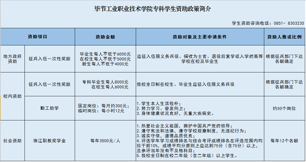 畢節(jié)工業(yè)職業(yè)技術(shù)學(xué)院專(zhuān)科學(xué)生資助政策簡(jiǎn)介