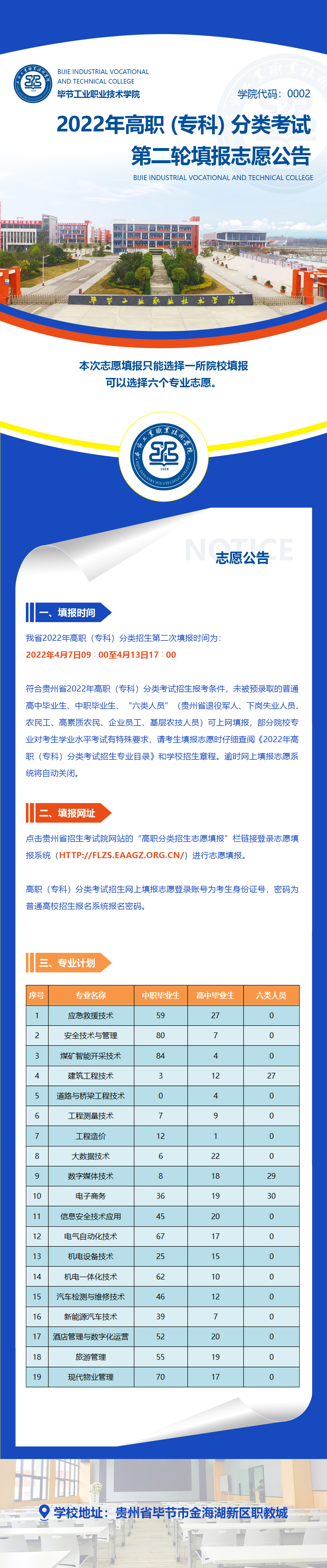 畢節(jié)工業(yè)職業(yè)技術學院2022分類第二批公示名單